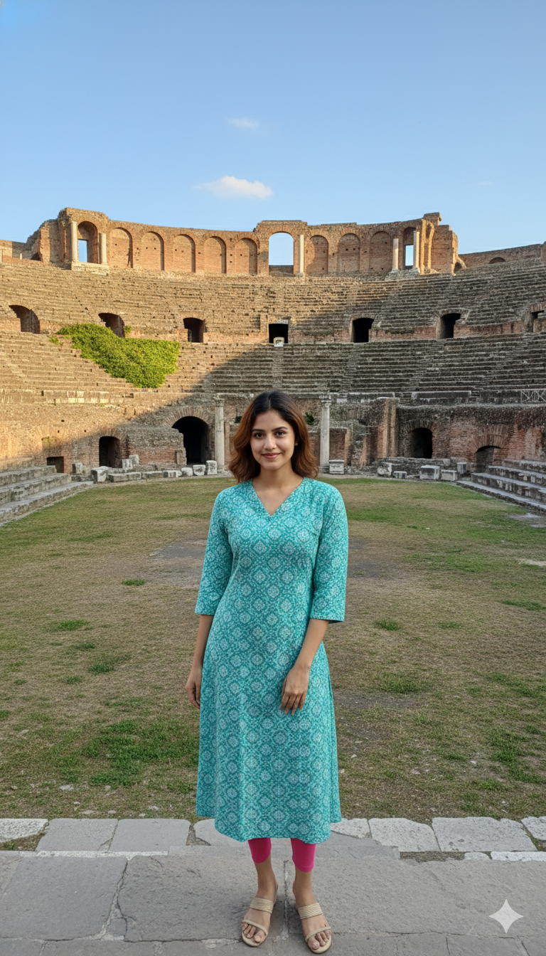 Note: This is a single kurti piece only. The leggings are for styling purposes and are not included with this purchase. Pair it with your favourite white, pink, or beige bottoms!