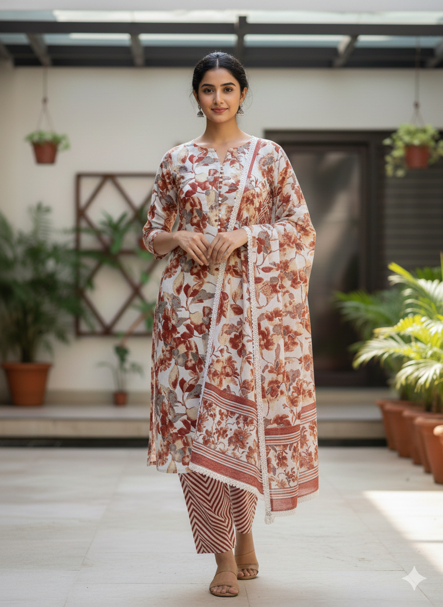 Includes: Top, Bottom, and Dupatta (Unstitched).